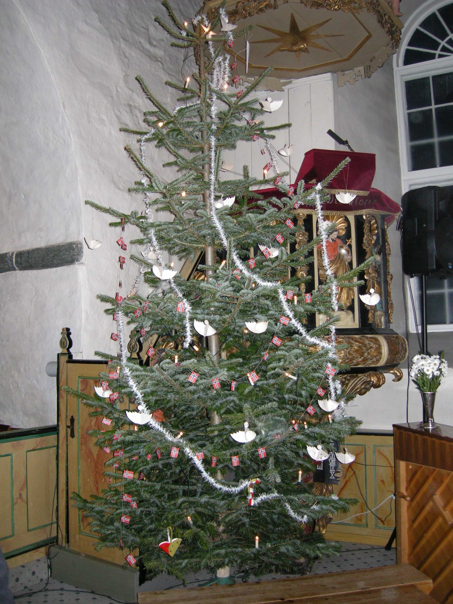 Oftest bruker vi gran eller furu som juletre. Vi har norske flagg ja jeg er halvt norsk og halvt fra et annet land, så vi har begge flaggene på treet. En undersøkelse foretatt av norsk gallup institutt a/s i 1998 viser at hele 64 % av norges befolkning. Ja den må skinne for den skal minne oss om vår gud. Det må jo da vere små papirflagg på tråd, til juletre.